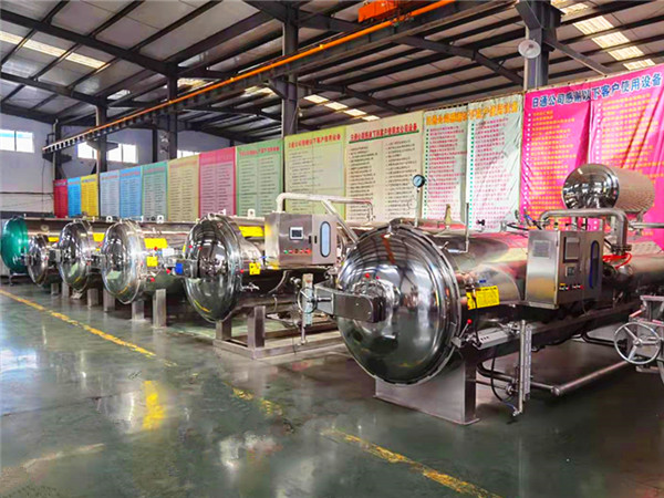 殺菌鍋由鍋體、鍋蓋、開(kāi)啟裝置、鎖緊楔塊、安全聯(lián)鎖裝置、軌道、滅菌筐、蒸汽噴管及若干管口等組成。鍋蓋密封采用充氣式硅橡膠耐溫密封圈,密封可靠,使用壽命長(zhǎng)。具有受熱面積大,熱效率高、加熱均勻、液料沸騰時(shí)間短、加熱溫度容易控制特點(diǎn)。殺菌鍋主要用于食品行業(yè)、醫(yī)藥等各個(gè)領(lǐng)域!